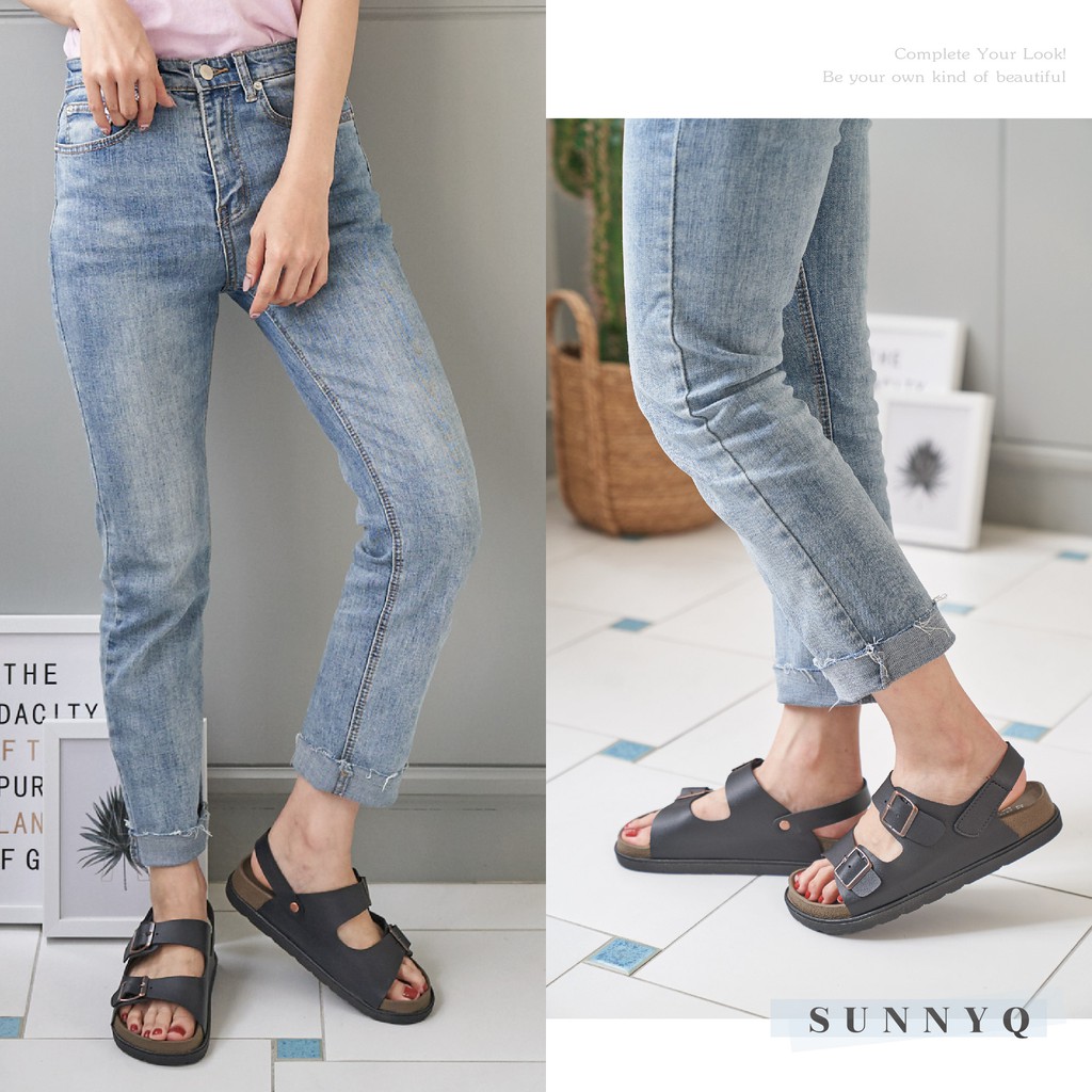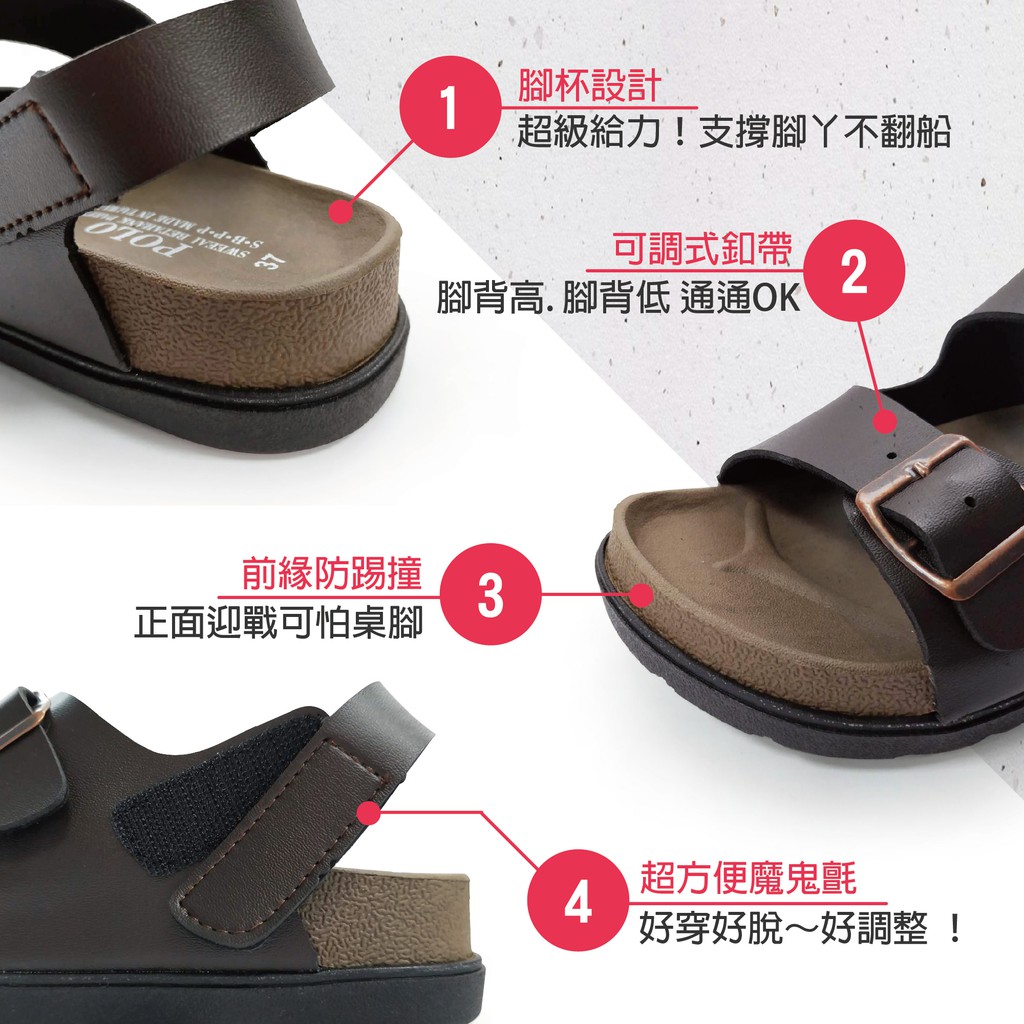 POLO MIT 台灣製 女鞋 質感雙釦寬帶魔鬼氈休閒厚底涼鞋 735