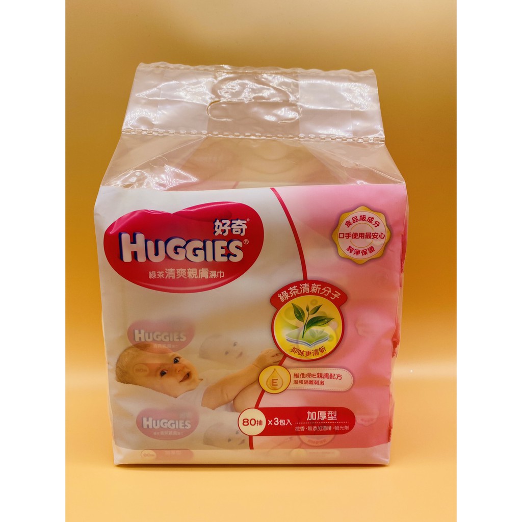 好奇 超純水濕巾加厚型80抽X3包入 飲用級純水/綠茶清新分子