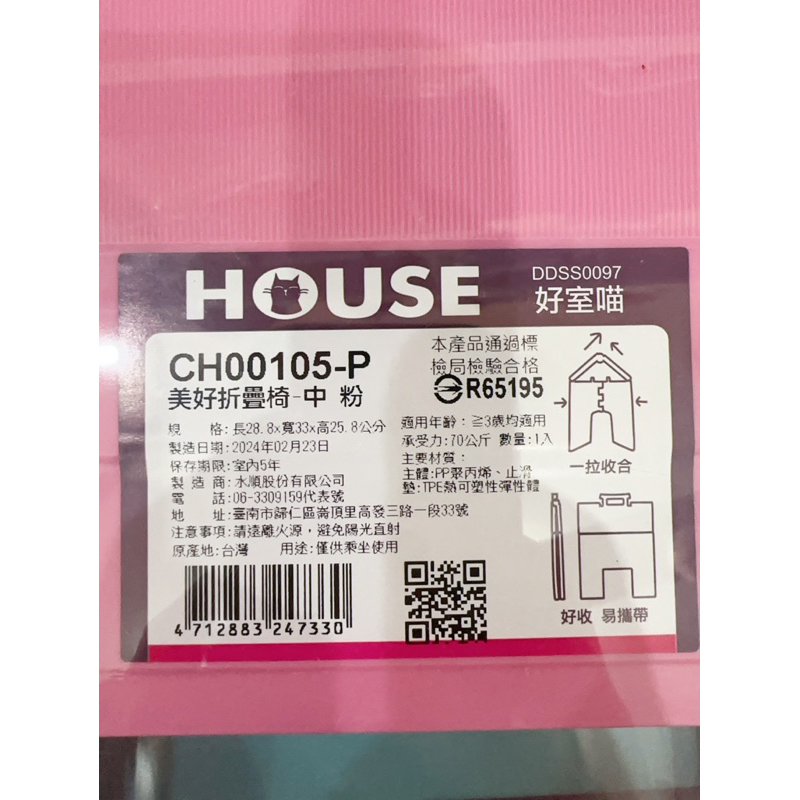 好室喵 CH00105-B 美好折疊椅(小)(中)(大)台灣製 外出 露營 庭院 收納 折疊椅 椅子 塑膠椅