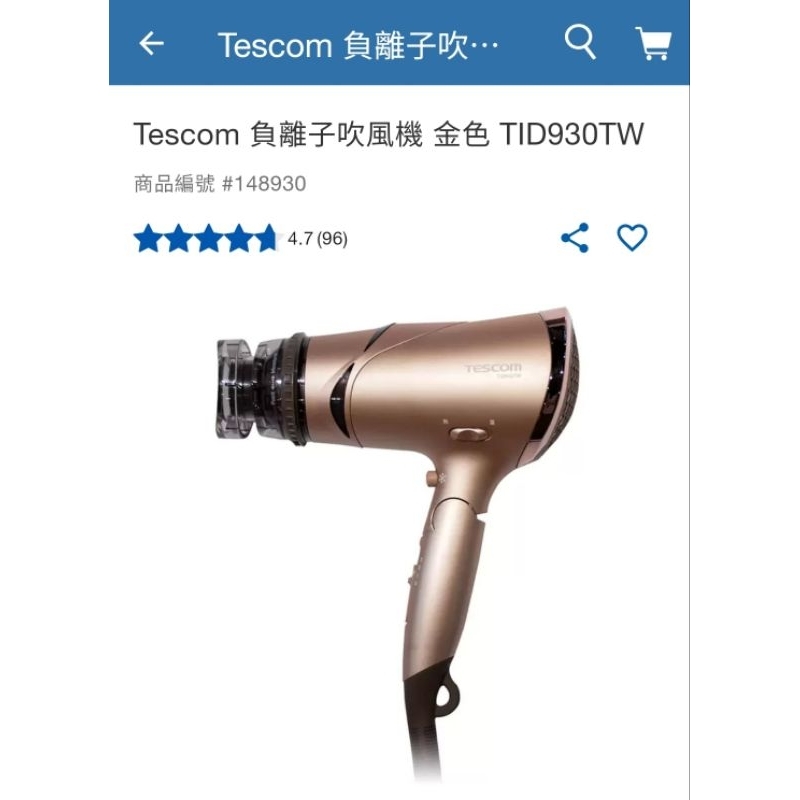 好市多❤Tescom負離子吹風機 TID930TW