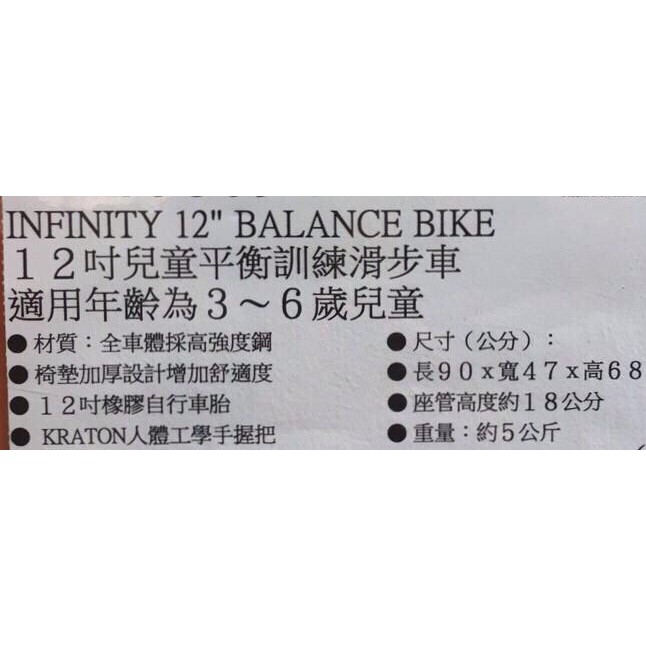好市多 INFINITY 12吋 BALANCE BIKE 兒童 平衡訓練 滑步車 平衡車