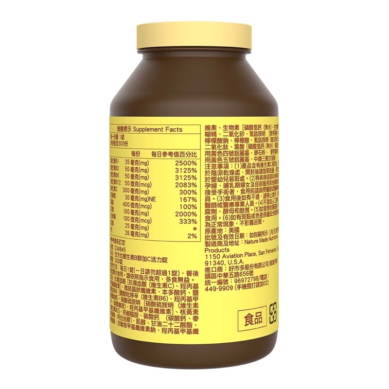 好市多 B+C 萊萃美維生素B群加C Nature Made 活力配方 300 粒 保健品