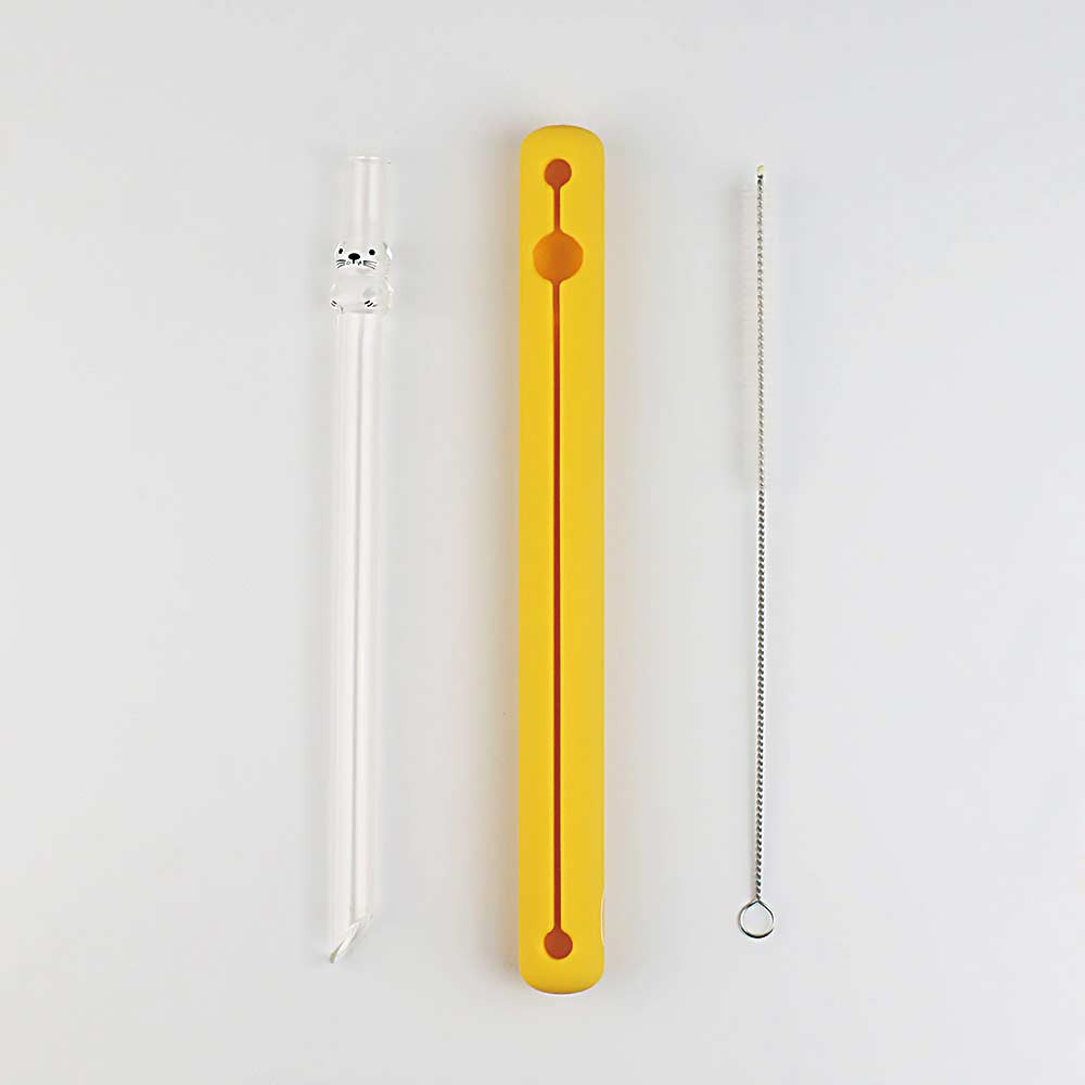 【好玻GOODGLAS】海豹造型玻璃吸管-清透(附吸管刷&收納套)|環保吸管