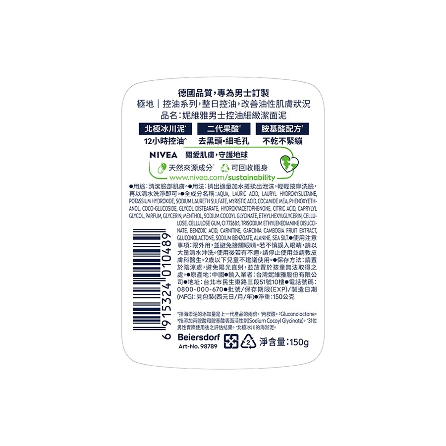 妮維雅 男士深極炭極淨控油潔面泥 150ml【家樂福】