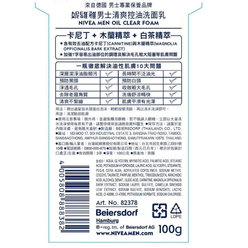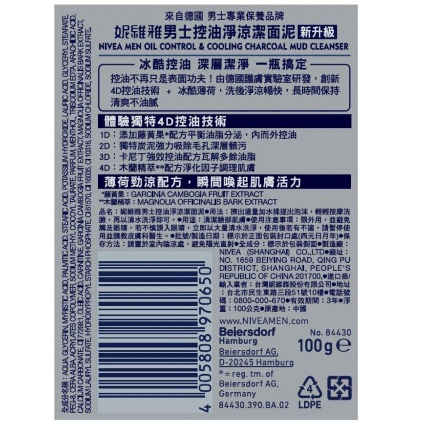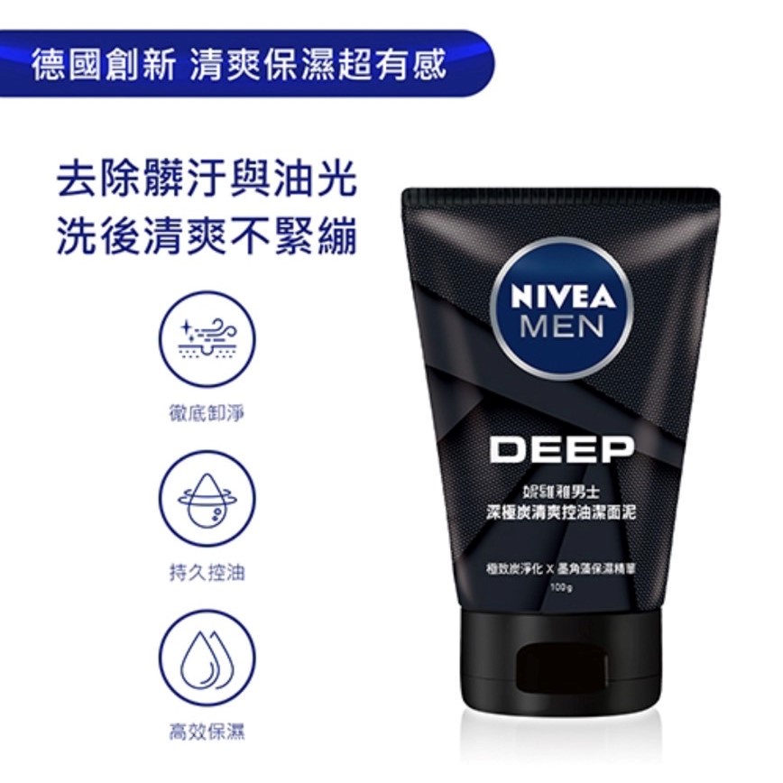 妮維雅 男士 洗面乳 / 潔面泥 清爽控油 / 控油淨涼 / 深極炭清爽控油 100ml