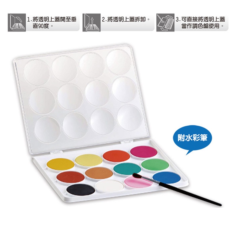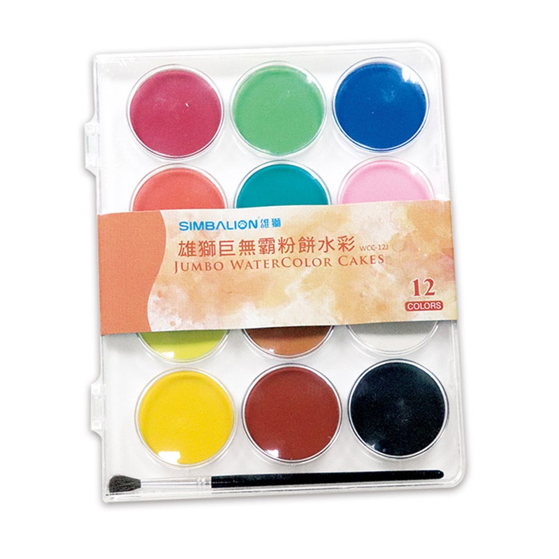 娃娃國【台灣 SIMBALION】雄獅 12色巨無霸粉餅水彩 水彩顏料 美術用品 彩色畫畫工具