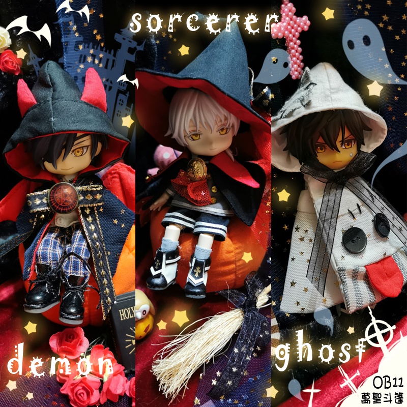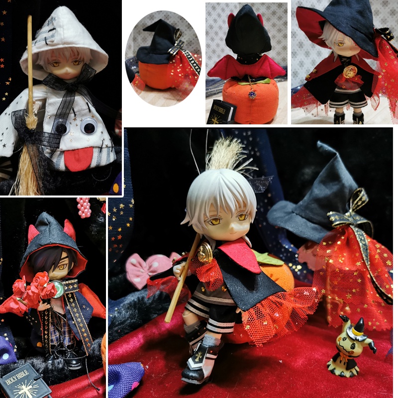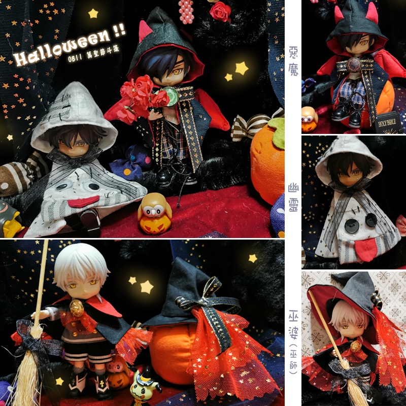 娃衣 黏土人 ob11 萬聖節 惡魔 幽靈 魔女 巫婆 魔法師 斗篷 巫帽 12分娃 黏土娃 娃服 配件 道具 手工
