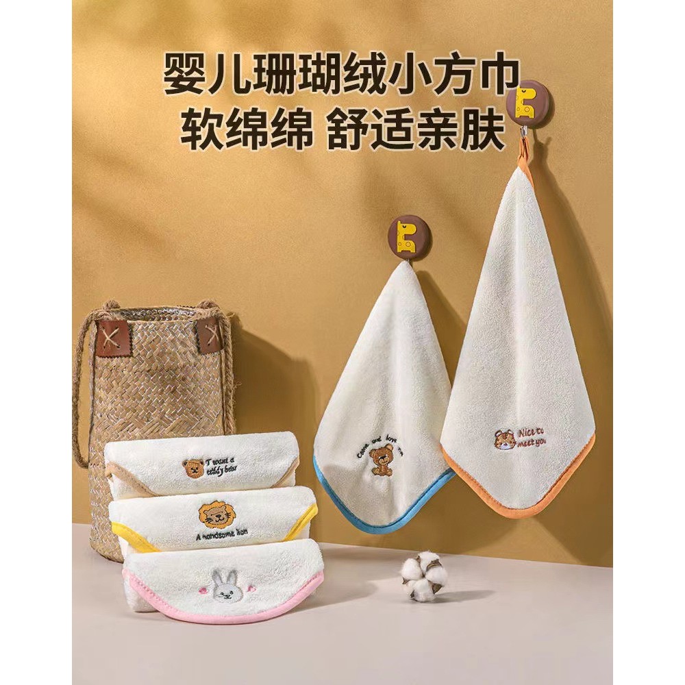 嬰兒擦手巾珊瑚絨加厚耐洗柔軟吸水不掉毛兒童手帕寶寶小方巾