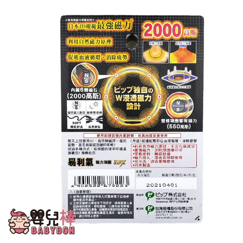 嬰兒棒 易利氣磁力項圈Max 黑色50公分 2000高斯 易利氣項圈 易利器