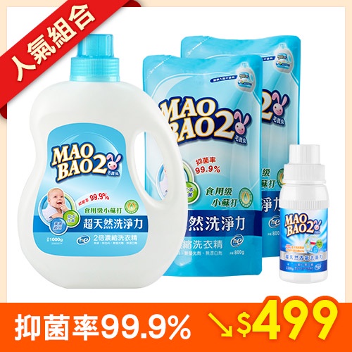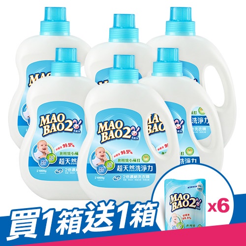 宅配 寶寶洗衣 【毛寶兔】超天然小蘇打植物2倍濃縮洗衣精1000g 嬰兒洗衣精 超酵素制臭抗菌防霉洗衣精-補充包