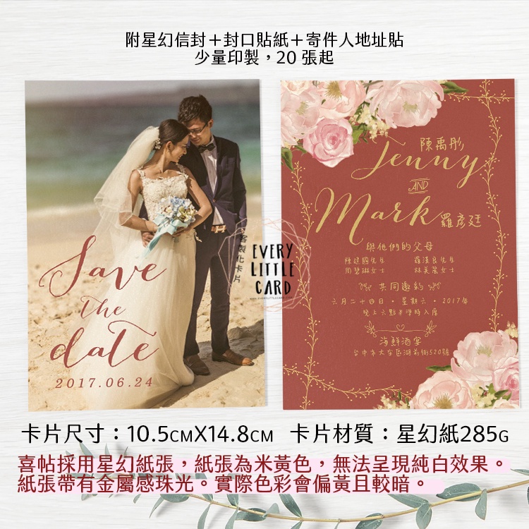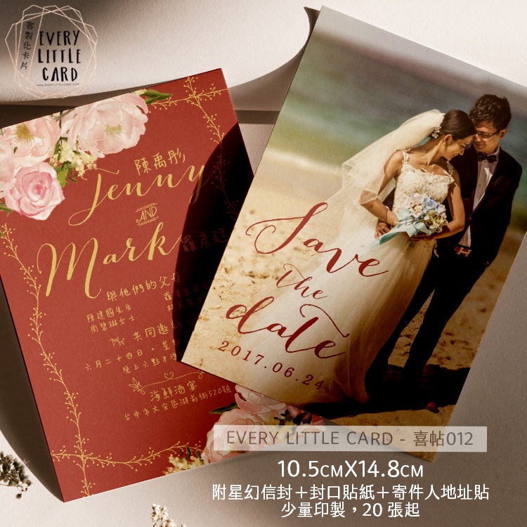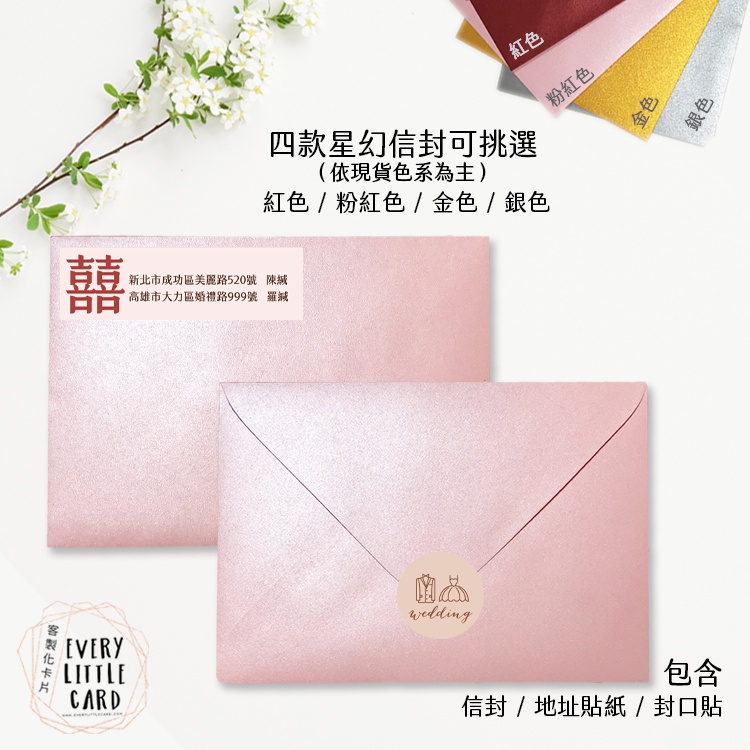 客製化 明信片式 喜帖 012 / 西式 / 紅色 金色 粉紅色 銀色 星幻信封 / 封口貼 地址貼紙