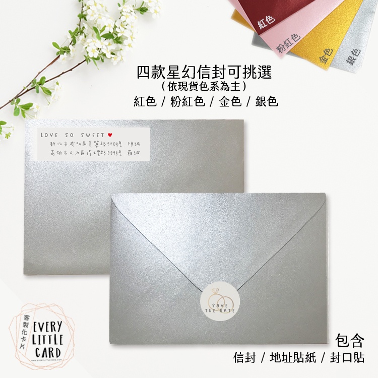 客製化 明信片式 喜帖 019 / 西式 / 紅色 金色 粉紅色 銀色 星幻信封 / 封口貼 地址貼紙