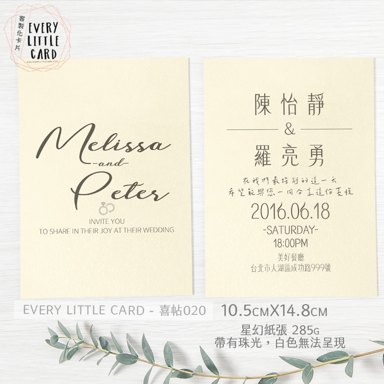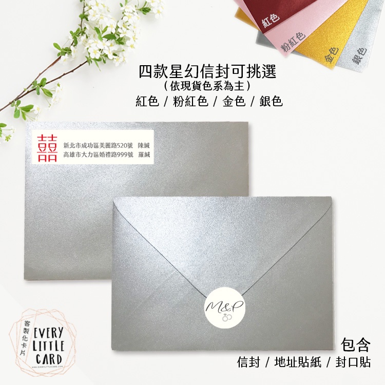 客製化 明信片式 喜帖 020 / 西式 / 紅色 金色 粉紅色 銀色 星幻信封 / 封口貼 地址貼紙