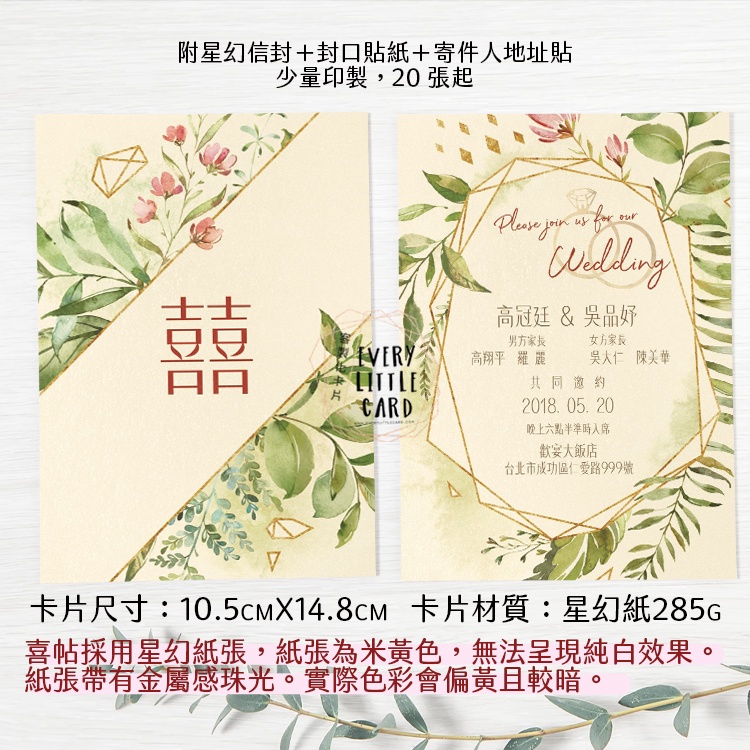 客製化 明信片式 喜帖 028 / 西式 / 紅色 金色 粉紅色 銀色 星幻信封 / 封口貼 地址貼紙