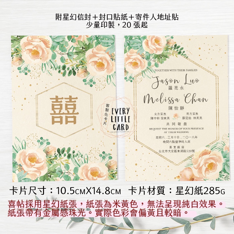 客製化 明信片式 喜帖 035 / 西式 / 紅色 金色 粉紅色 銀色 星幻信封 / 封口貼 地址貼紙
