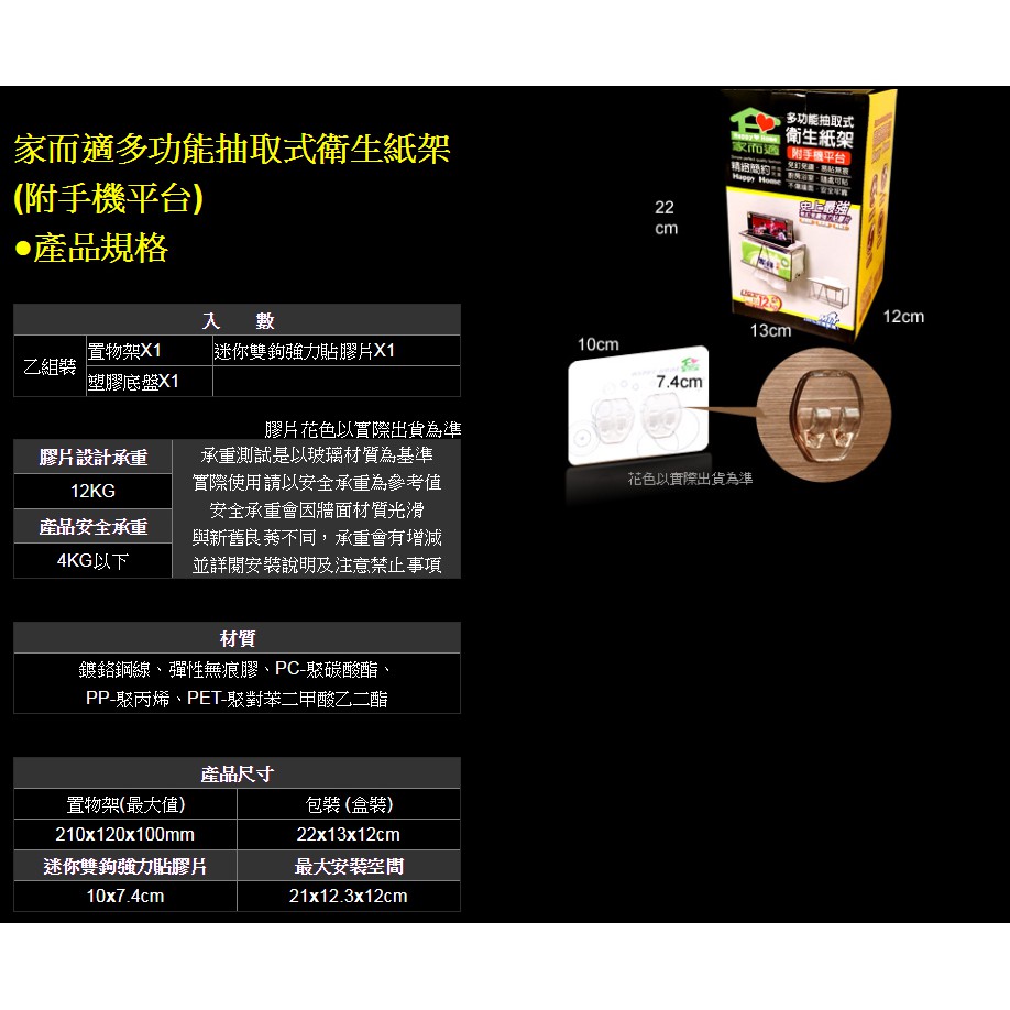 家而適多功能衛生紙架 附手機平台(1入)廚房浴室收納 不留殘膠 重複貼 適用免鑽孔鑽洞牆壁快速安裝