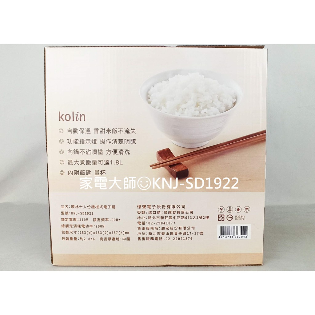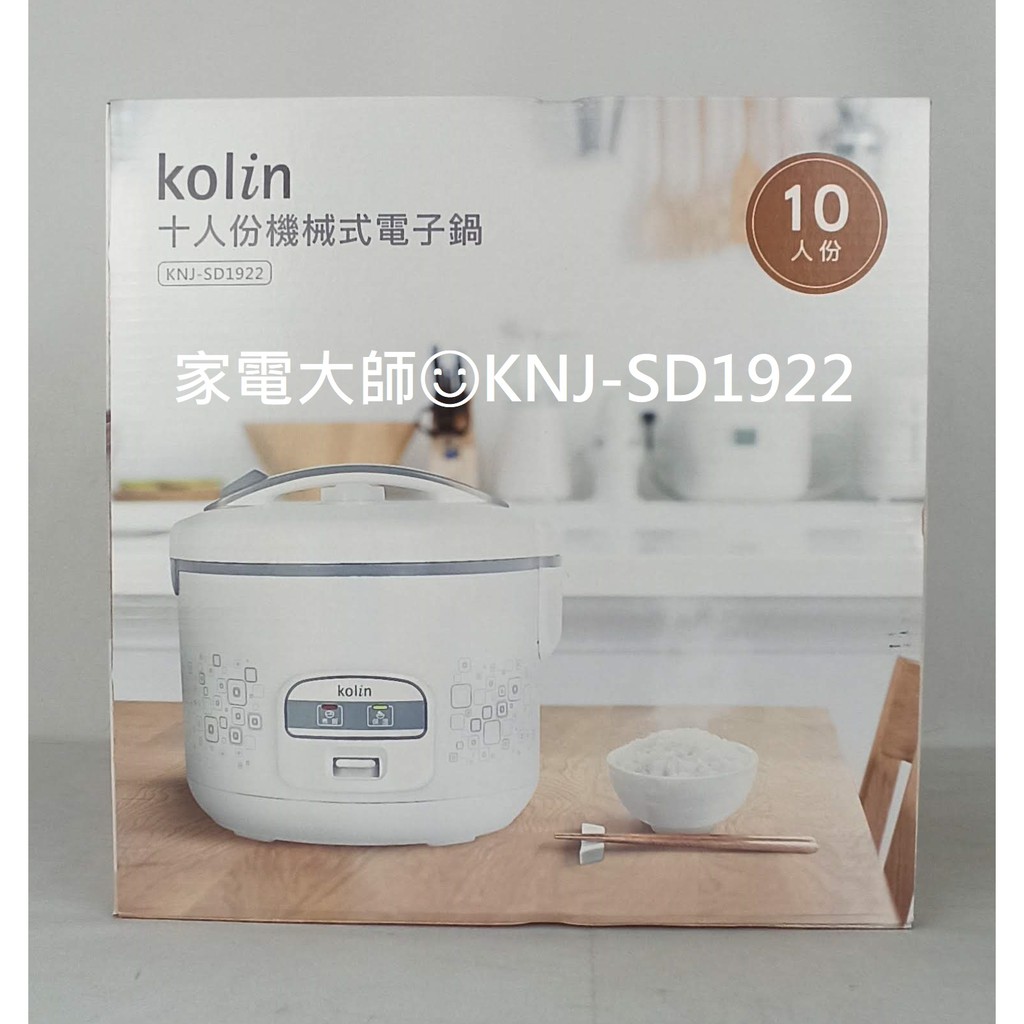 家電大師 有發票 超取限一台 Kolin歌林 十人份機械式電子鍋 KNJ-SD1922