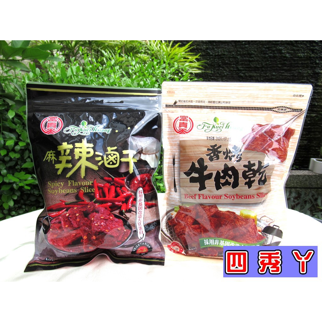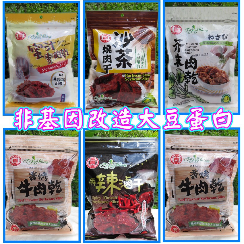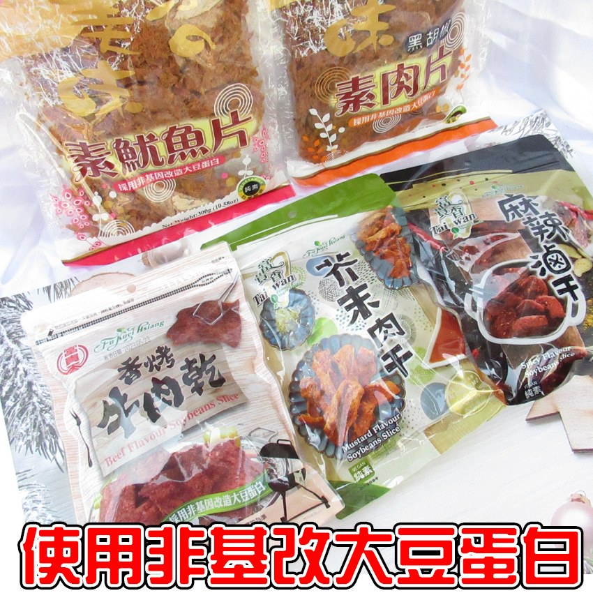 富貴香非基改豆乾 素肉乾 素魷魚片 麻辣肉乾 芥末肉乾 蜜汁素肉乾 沙茶燒肉乾 素肉片 麻辣滷乾 香烤牛肉乾 富味香
