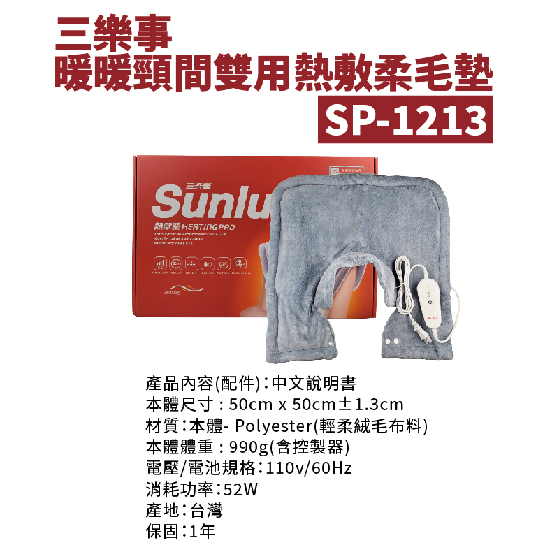 寶寶樂 SUNLUS三樂事熱敷墊 送暖暖包 電熱毯 電毯 SP1218 SP1219 SP1212 SP1213