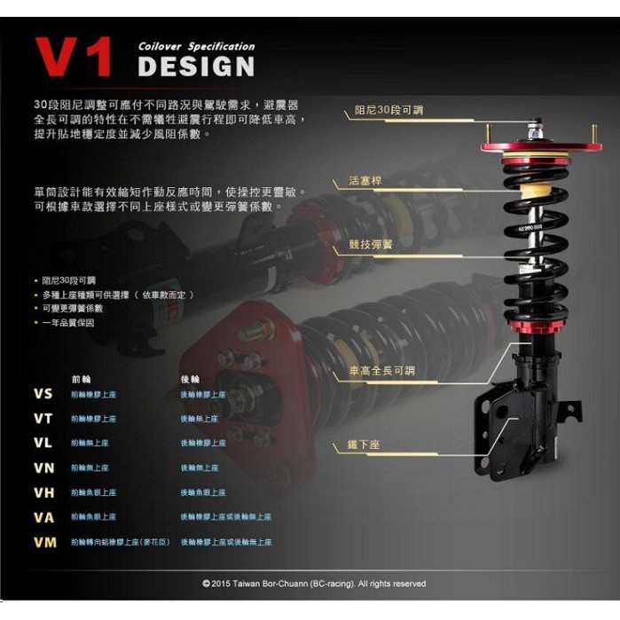 小傑車燈精品--全新 高規格 BC 避震器 V1 DESIGN 30段阻尼 高低軟硬可調 ALTIS 11代 11.5代