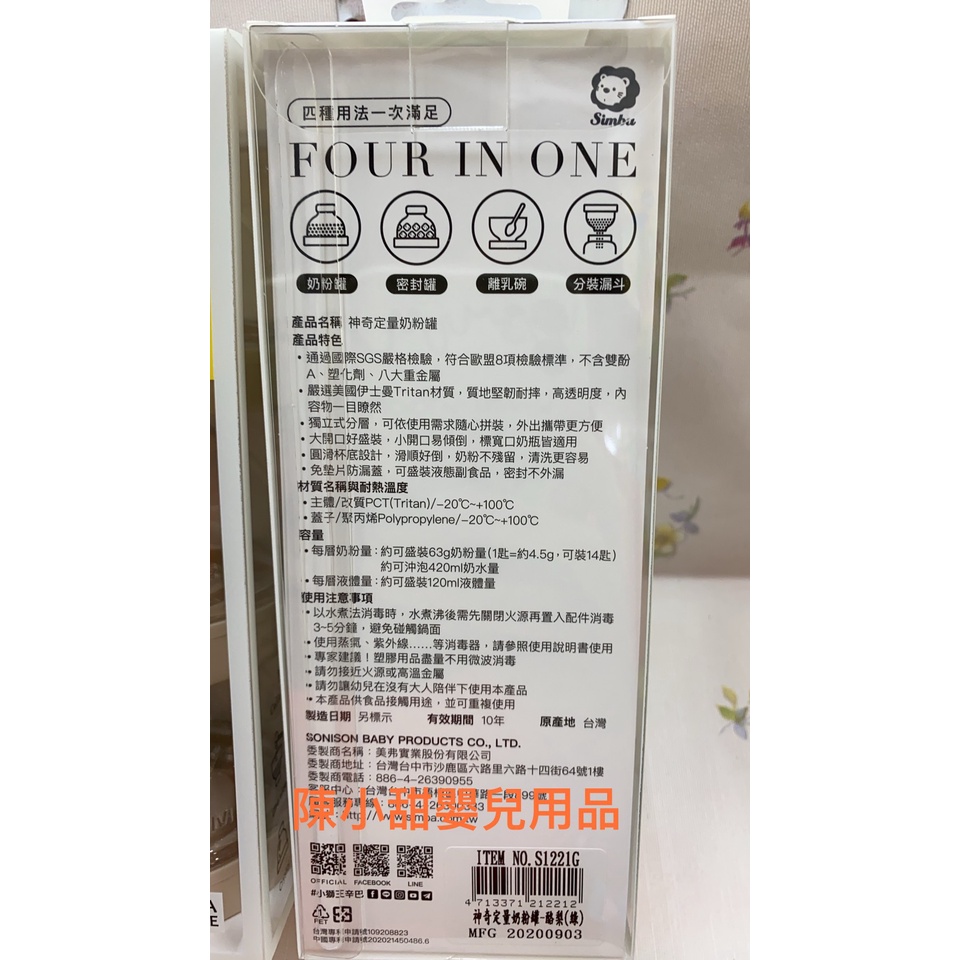 小獅王辛巴神奇定量奶粉罐 奶粉盒外出攜帶方便(5種顏色)❤陳小甜嬰兒用品❤