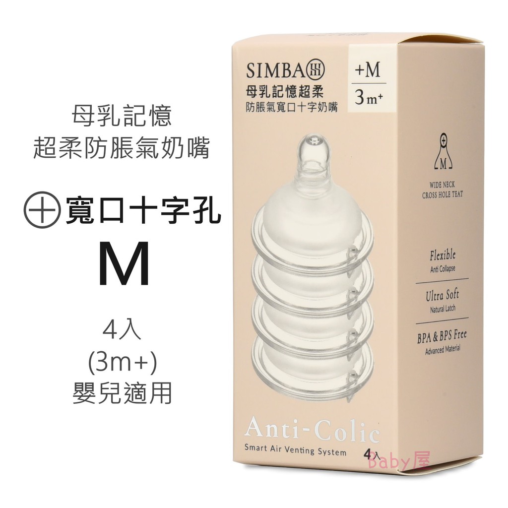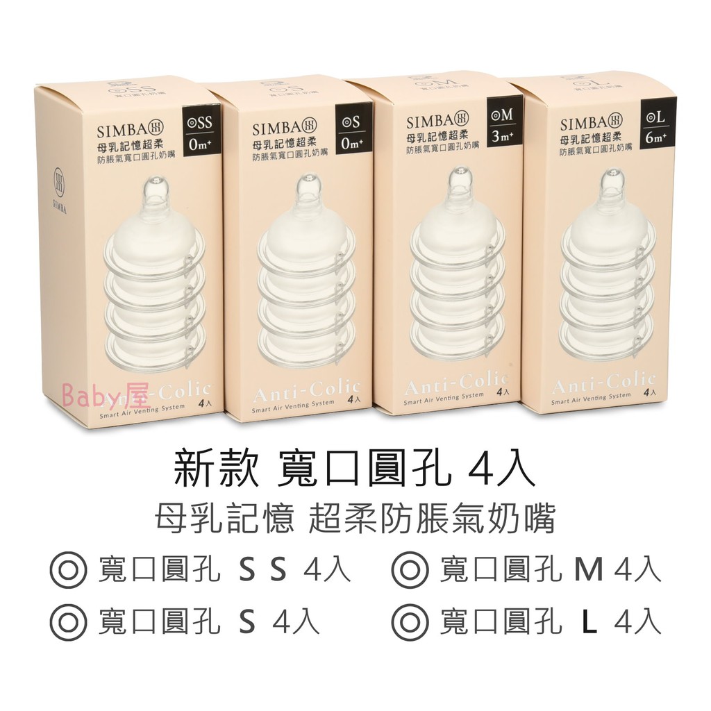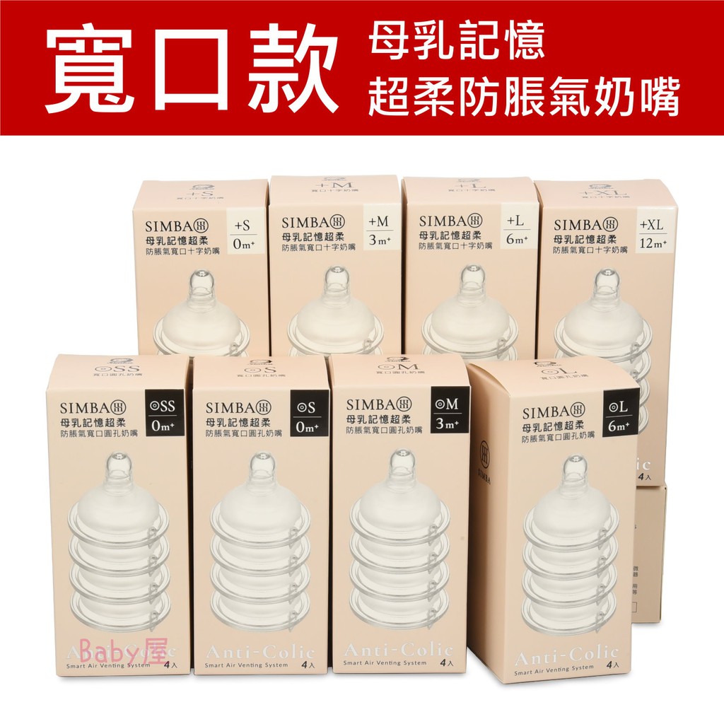小獅王辛巴『寬口』母乳記憶 超柔防脹氣奶嘴 (圓孔/十字孔) 1盒4入 蘊蜜 寬口奶嘴 奶瓶奶嘴 小獅王奶嘴 Simba