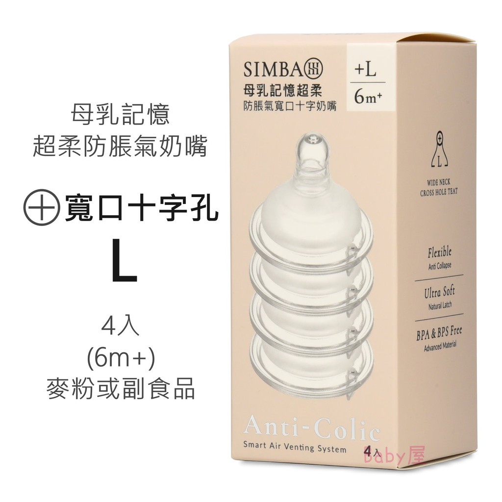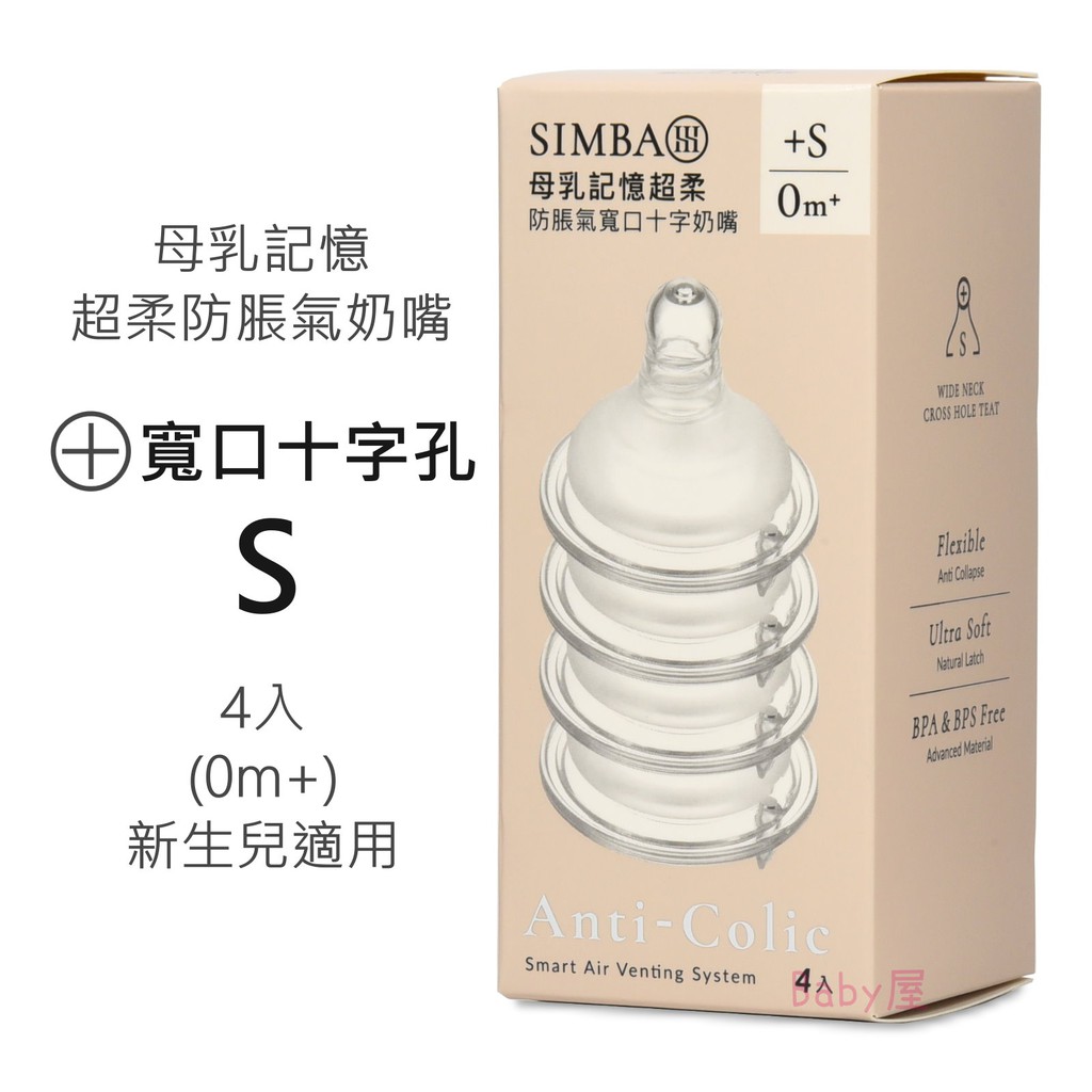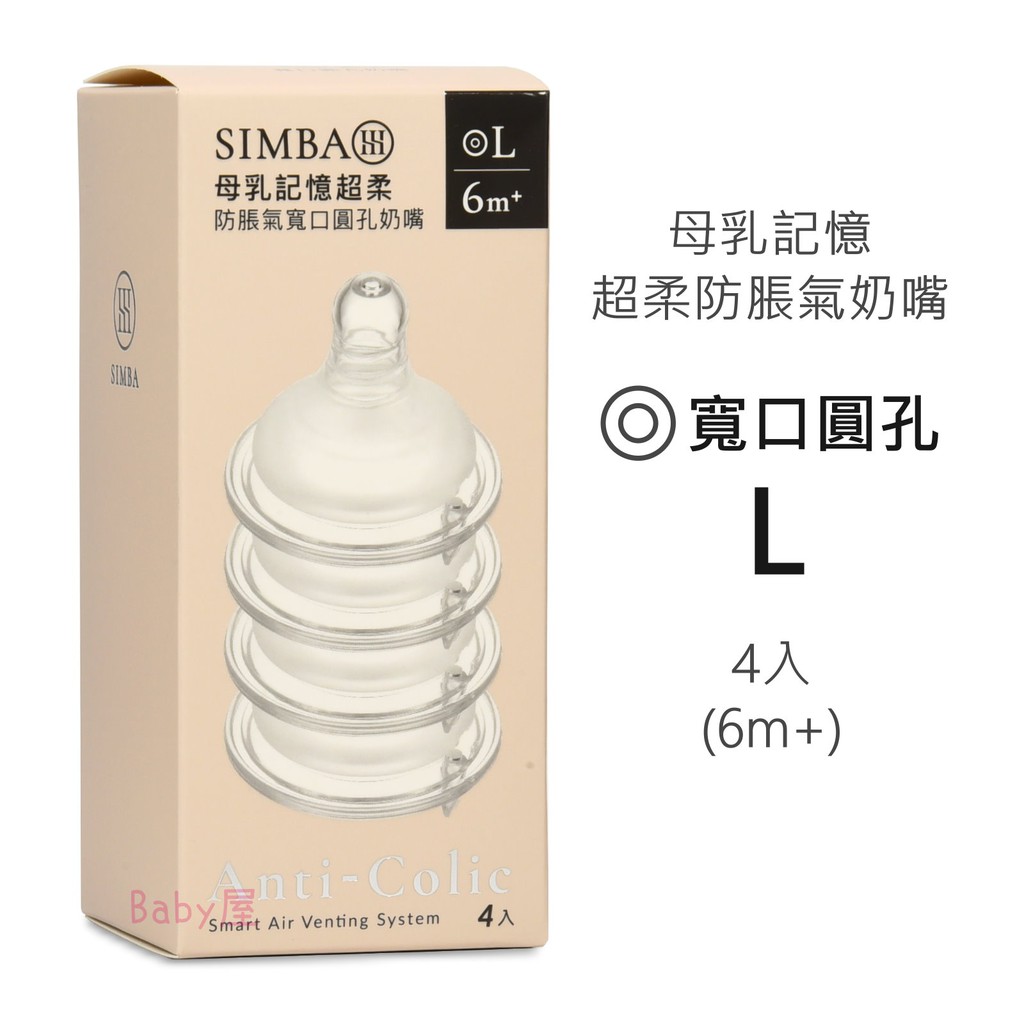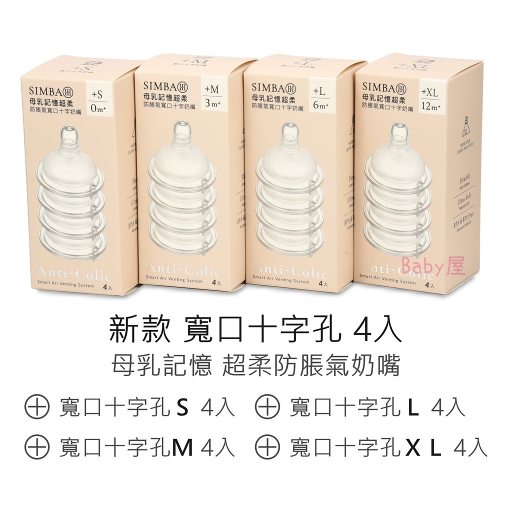 小獅王辛巴『寬口』母乳記憶 超柔防脹氣奶嘴 (圓孔/十字孔) 1盒4入 蘊蜜 寬口奶嘴 奶瓶奶嘴 小獅王奶嘴 Simba
