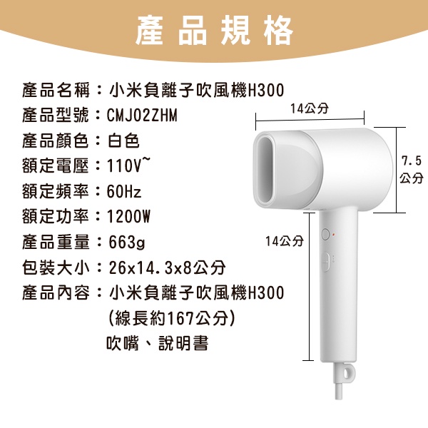 小米負離子吹風機H300 台版 美髮 冷熱風 110V 吹風機 護髮 快乾 智能控溫 現貨 當天出貨 刀鋒商城