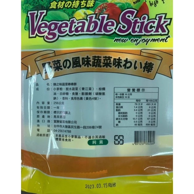 小翰館 免運優惠館💥蝦皮代開發票💥禦之味蔬菜棒棒餅 260g 16小包(全素 )蔬菜棒棒餅