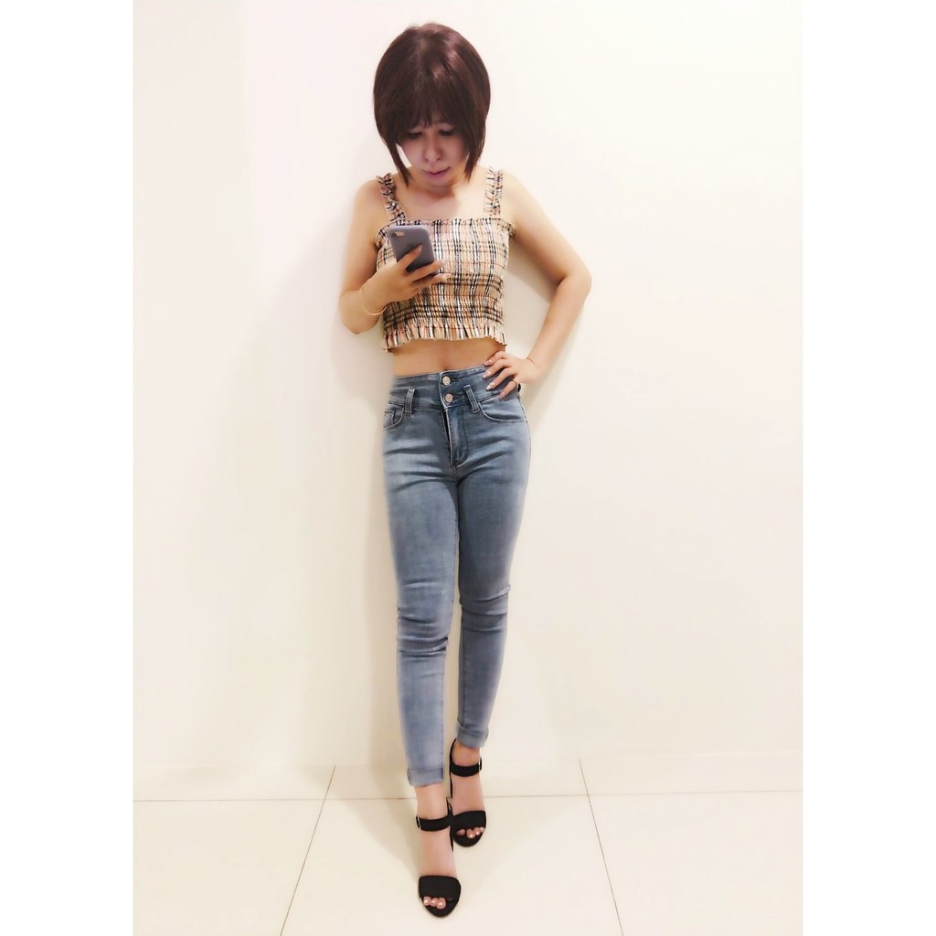 Anniou小隻女穿搭-歐美高腰彈性翹臀牛仔長褲-3色現貨+預購/小隻女牛仔褲 小隻女長褲 小個子長褲 小個子穿搭 褲子