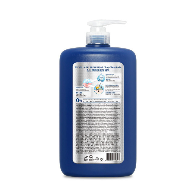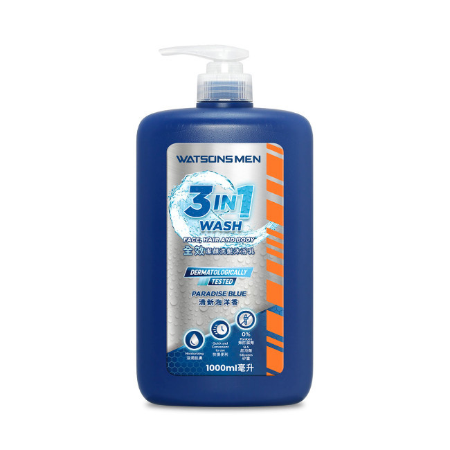 屈臣氏全效潔顏洗髮沐浴乳(清新海洋香)1000ml
