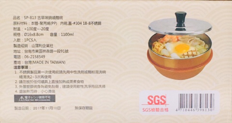 山蒲利 古早味鍋燒麵碗 1100ML SP-813 台灣製造 泡麵碗 湯碗 不銹鋼碗