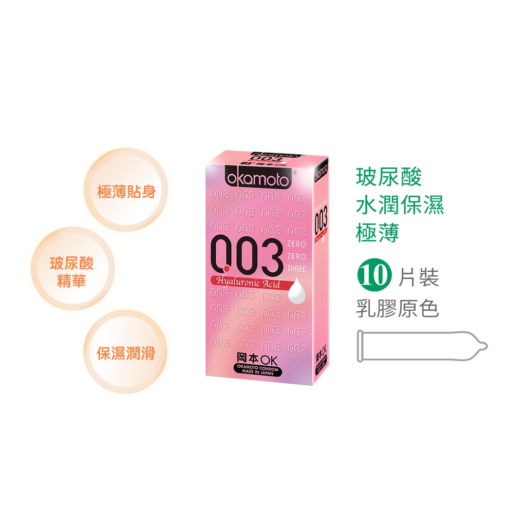 岡本 003 玻尿酸 極薄 52mm 衛生套 保險套 10片