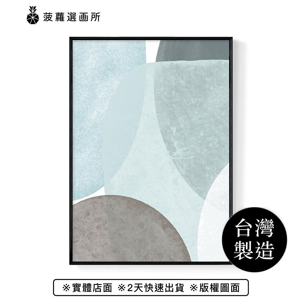 幾何圓 • 翠藍 - 藍綠棕簡單幾何掛畫/放鬆感海報/臥室設計/送禮/菠蘿選畫所