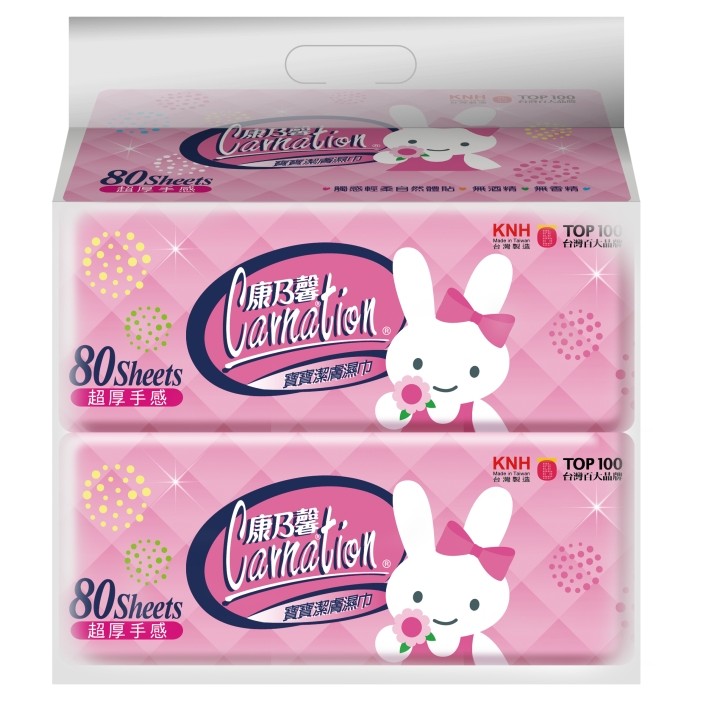康乃馨寶寶潔膚濕巾超厚型80片2包(屈臣氏獨家)