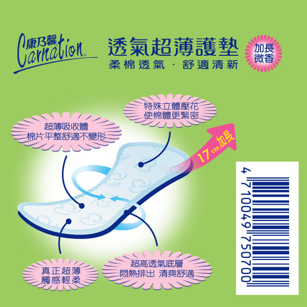 康乃馨透氣超薄護墊加長型(微香)26片(包裝隨機) 【任2件5折】