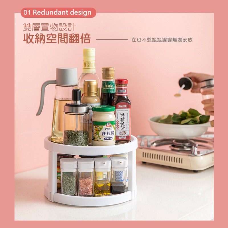 廚房360度旋轉多功能收納 旋轉托盤 多功能組合置物架 罐瓶整理收納 調料收納架 整理盒 單層 兩層【CC0150】