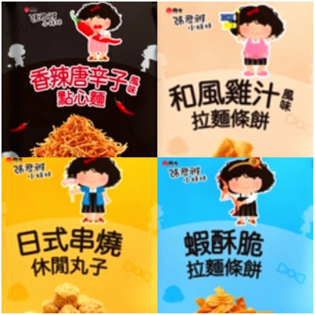 張君雅小妹妹 點心麵 墨西哥辣雞 香辣唐辛子75g 起司香蔥 韓式炸雞 和風雞汁拉麵條餅65g 日式串燒 海苔休閒丸子