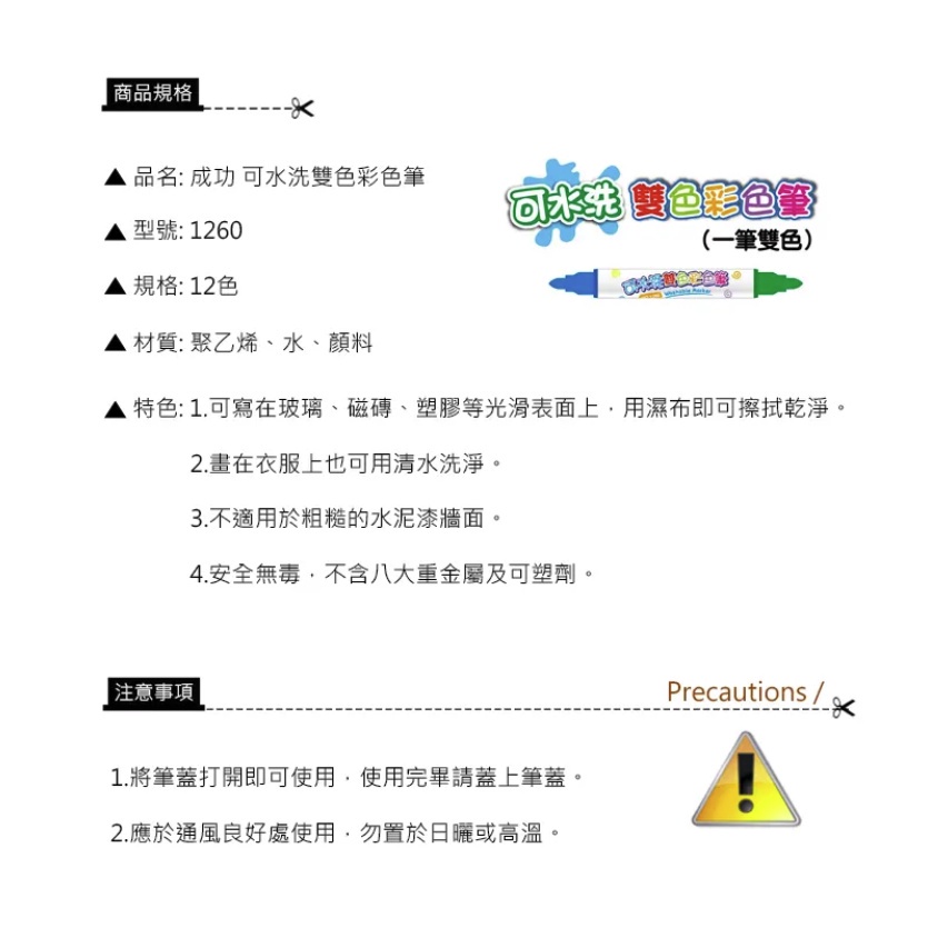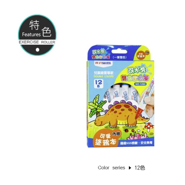 彩色筆 可水洗雙色彩色筆 畫筆 (12色) 1260 正台灣公司貨 美術用具 附發票 SUCCESS 成功牌