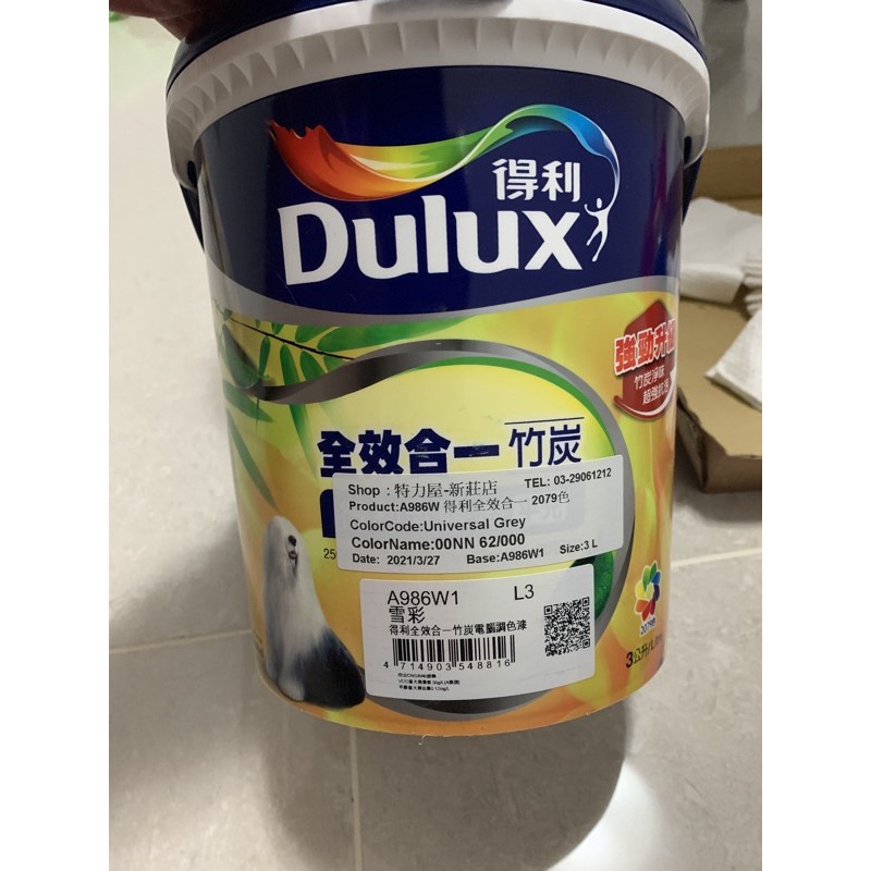 得利 3L全效合一 竹炭 乳膠漆 灰色 00NN 62/000