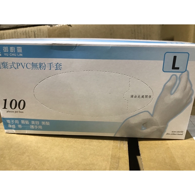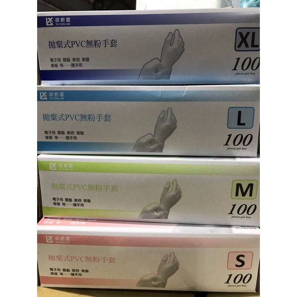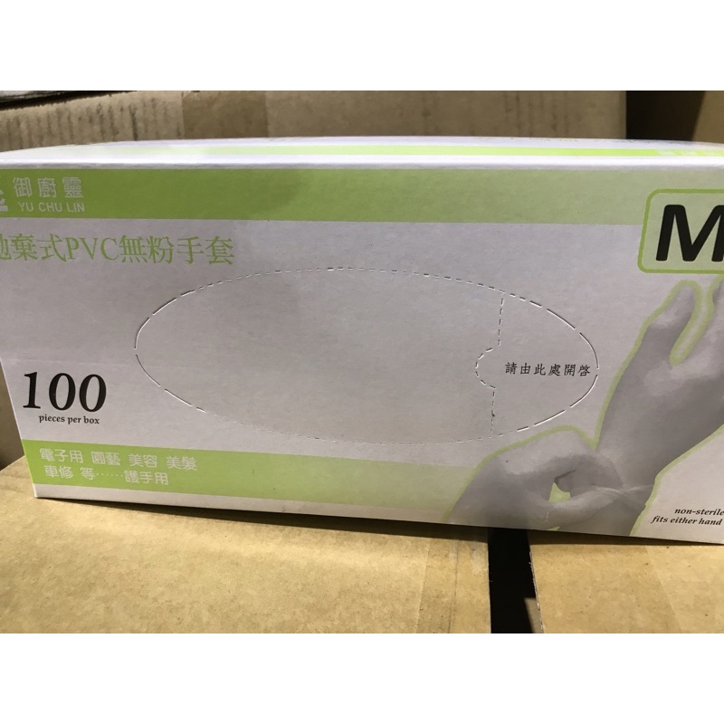 御廚靈 拋棄式PVC 無粉手套 盒裝100支S M L XL 號🌹有現貨🌹
