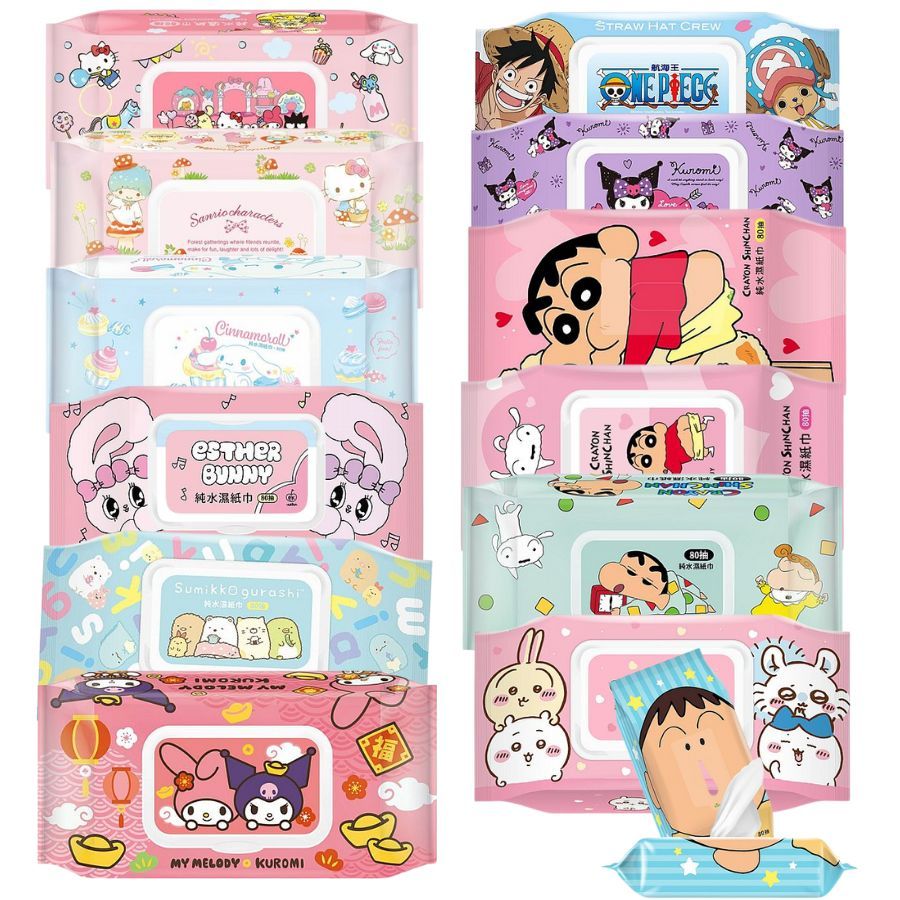 御衣坊 純水濕紙巾 80抽 蠟筆小新 三麗鷗 美樂蒂&酷洛米 大耳狗 角落小夥伴 吉伊卡哇 濕巾 DS025284 X
