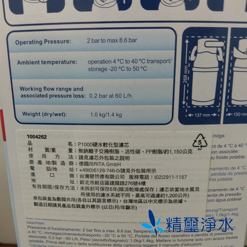德國【BRITA】 P1000軟水硬化櫥下型濾芯