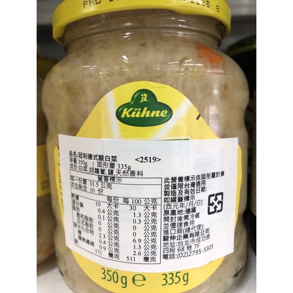 德國 冠利 德式酸白菜 350g 德式酸菜 德國酸菜 德式豬腳的好夥伴! 經典酸菜 酸白菜 現貨供應