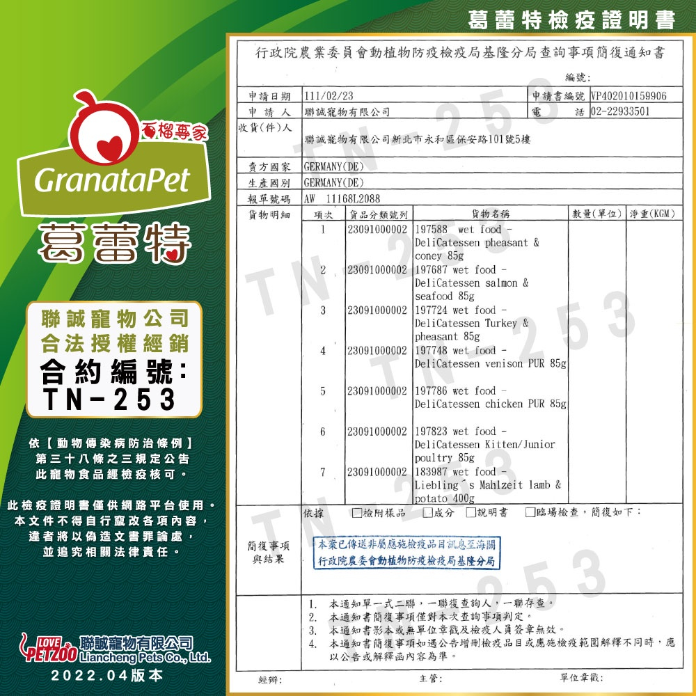 德國 Granatapet葛蕾特 德國罐 精緻時光無穀 主食餐包 罐頭 德國罐 貓主食罐 貓主食 成貓 餐包 幼貓
