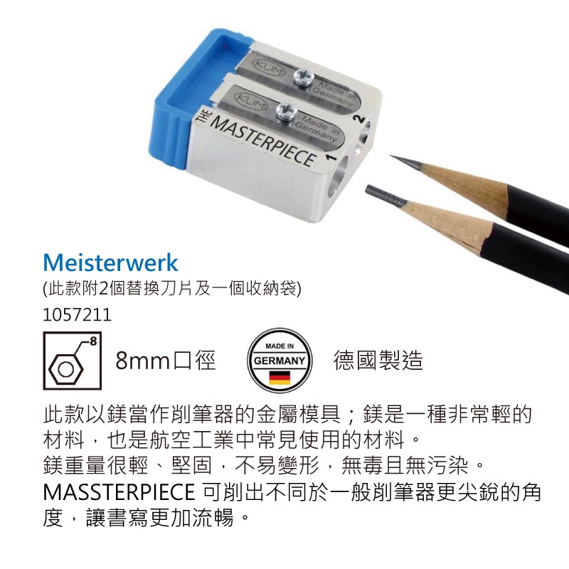 德國 KUM 庫姆 Meisterwerk經典攜帶式雙孔削筆器 1057211 削鉛筆器 含替換刀片 同央美術 z