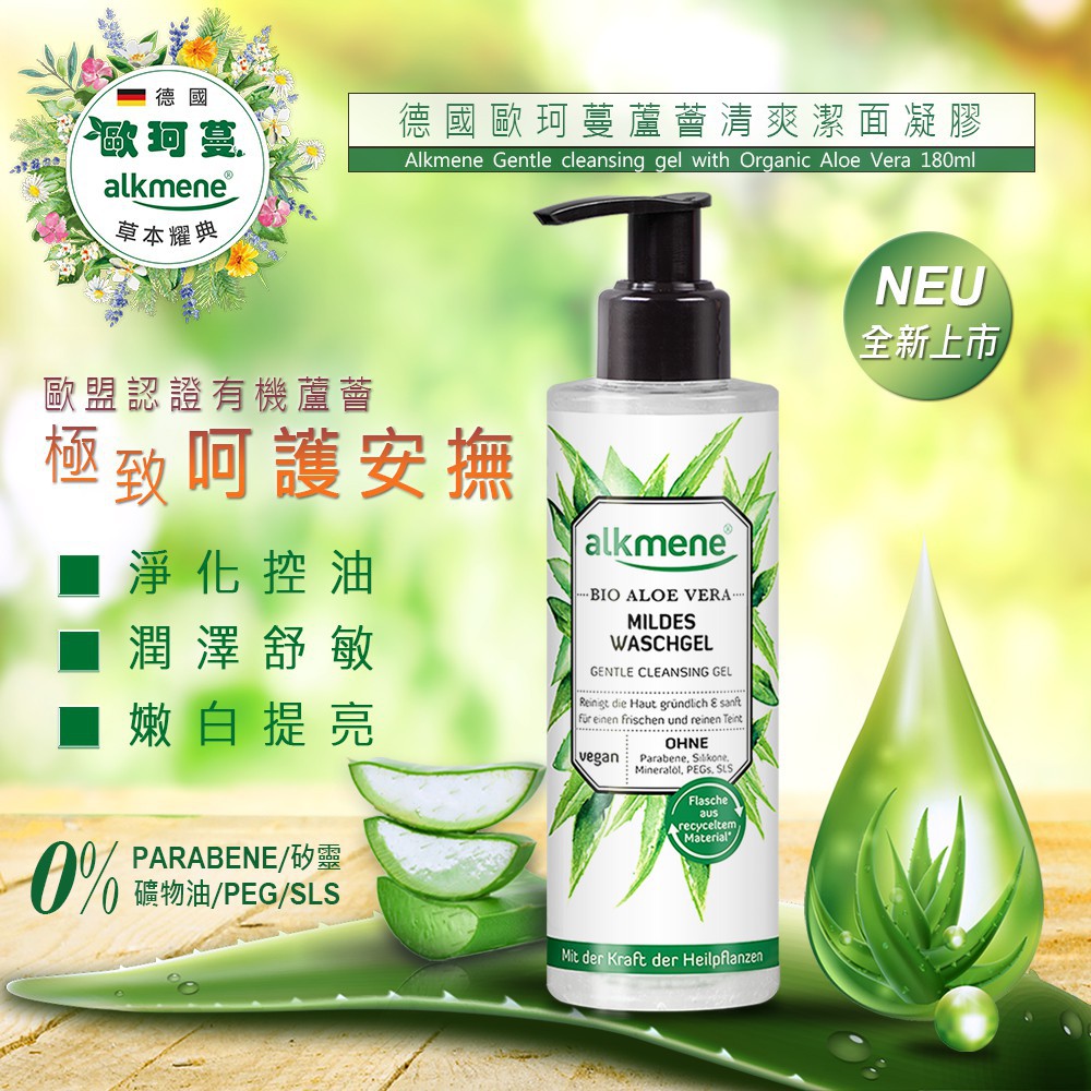 德國alkmene歐坷蔓草本蘆薈清爽潔面凝膠180ml