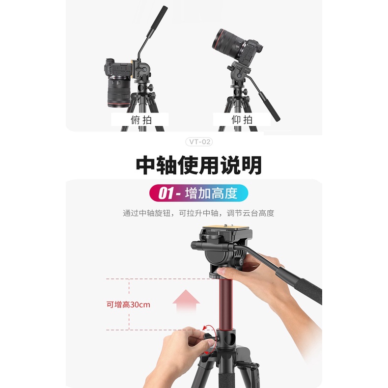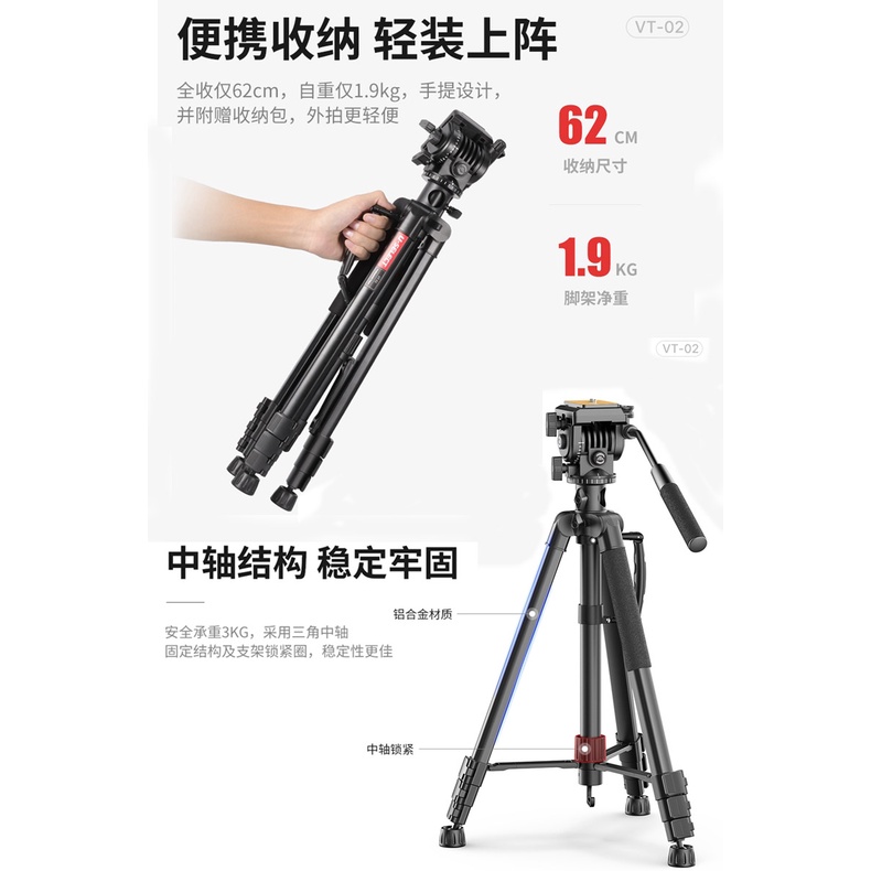 怪機絲 ULANZI VT-02輕便專業三腳架-541 可俯拍 相機單反 金屬中軸 液壓雲台 攝錄影直播