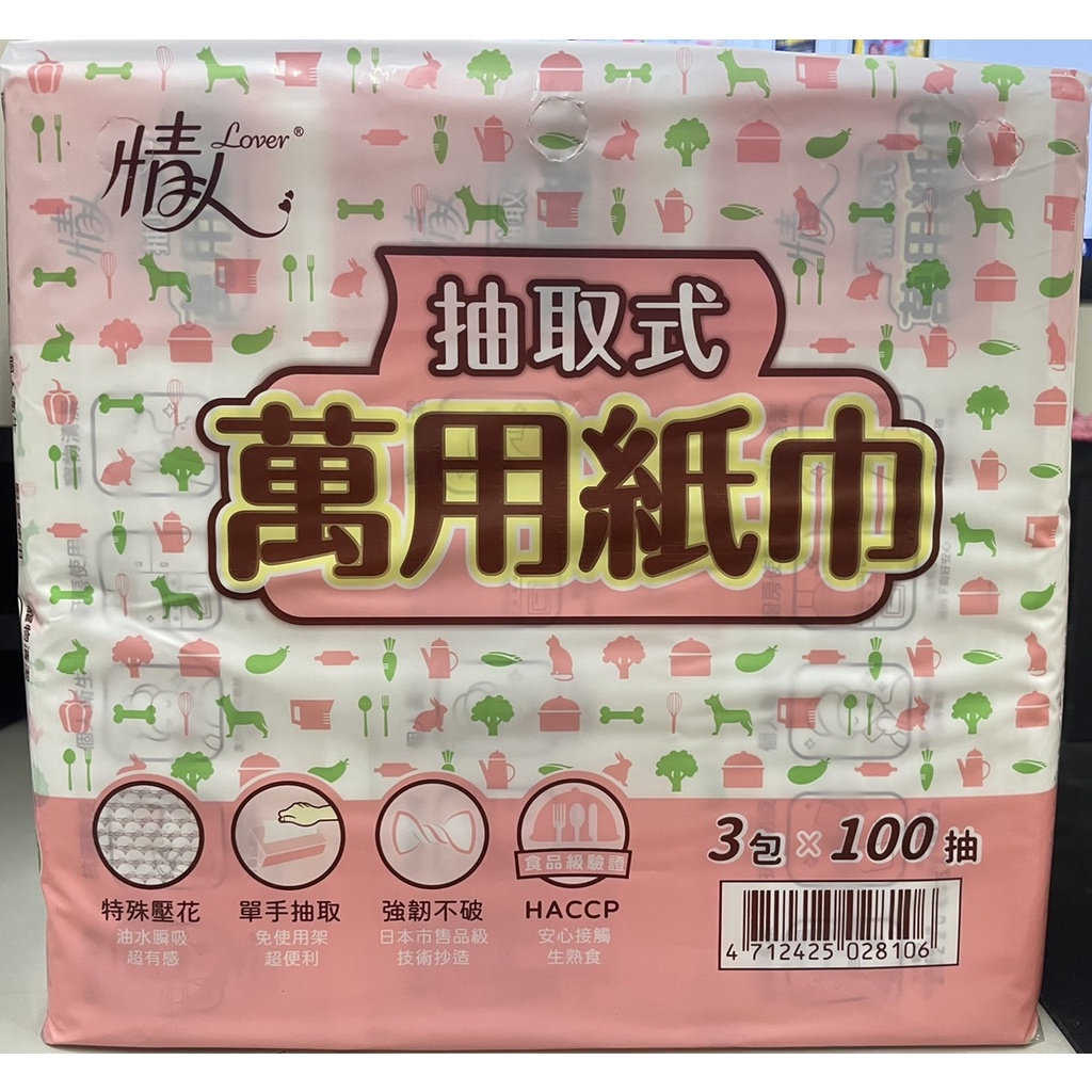 情人 抽取式 萬用 紙巾 廚房紙巾 3包 100抽 / 串