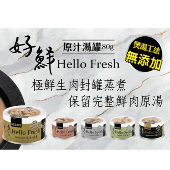 惜時SEEDS《HelloFresh-好鮮原汁湯罐系列-80g大罐》/貓罐頭 一箱24罐-多種口味可混搭